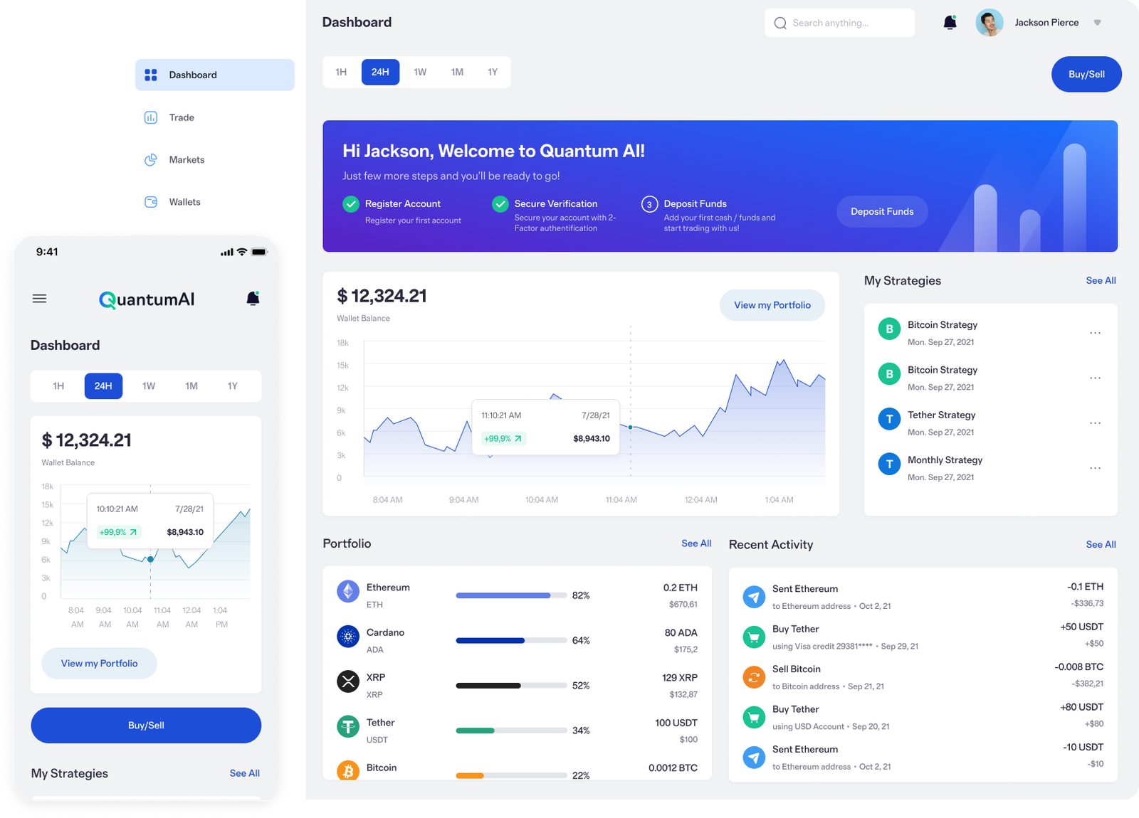 Opera con activos digitales líderes como Bitcoin, Ethereum y Solana con precisión. Nuestra IA analiza de forma continua las tendencias en blockchain y las señales del mercado para identificar los mejores puntos de entrada y salida.
